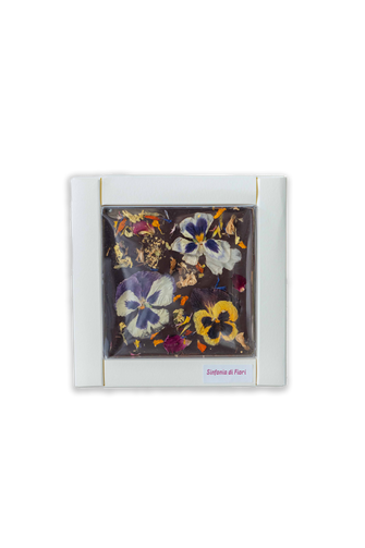 Un elegante tavoletta artigianale di cioccolato extra-fondente, decorata a mano con fiori disidratati come viole, primule e sambuco. Un incontro raffinato tra l'intensità del cacao e le delicate note floreali, per un esperienza sensoriale elegante ed autentica. Perfetta come idea regalo o per chi ama il cioccolato fondente fatto a mano con un tocco naturale e poetico.