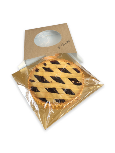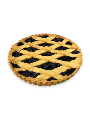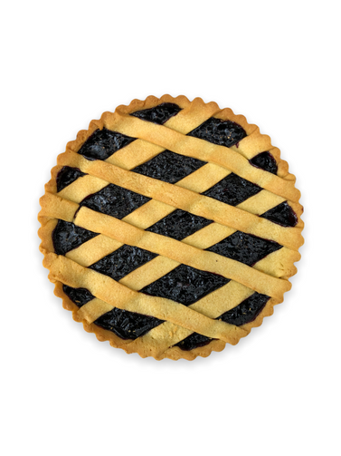 Crostata di pasta frolla con marmellata ai mirtilli.
