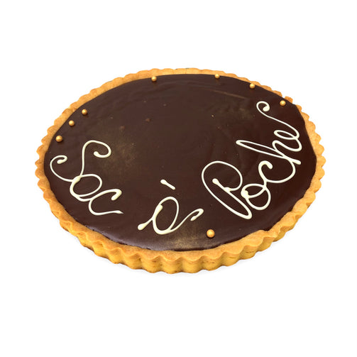 La nostra crostata al cioccolato con inserto di marmellata ai lamponi è realizzata con cioccolato FONDENTE by Sac à Poche. Questo cioccolato è realizzato con una miscela unica al modo, creata per la nostra pasticceria selezionando personalmente le monorigini di cacao che la compongono: Ghana, Venezuela, Sao Tomè ed Ecuador per una ricetta che rispecchia il nostro concetto di "FONDENTE" .