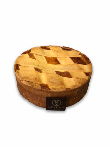 Ingredienti: pasta frolla (farina di grano, uova, burro, zucchero, farina di mandorle, sale), latte, burro, grano, uova, ricotta, zucchero semolato, cedro candito, aromi.
